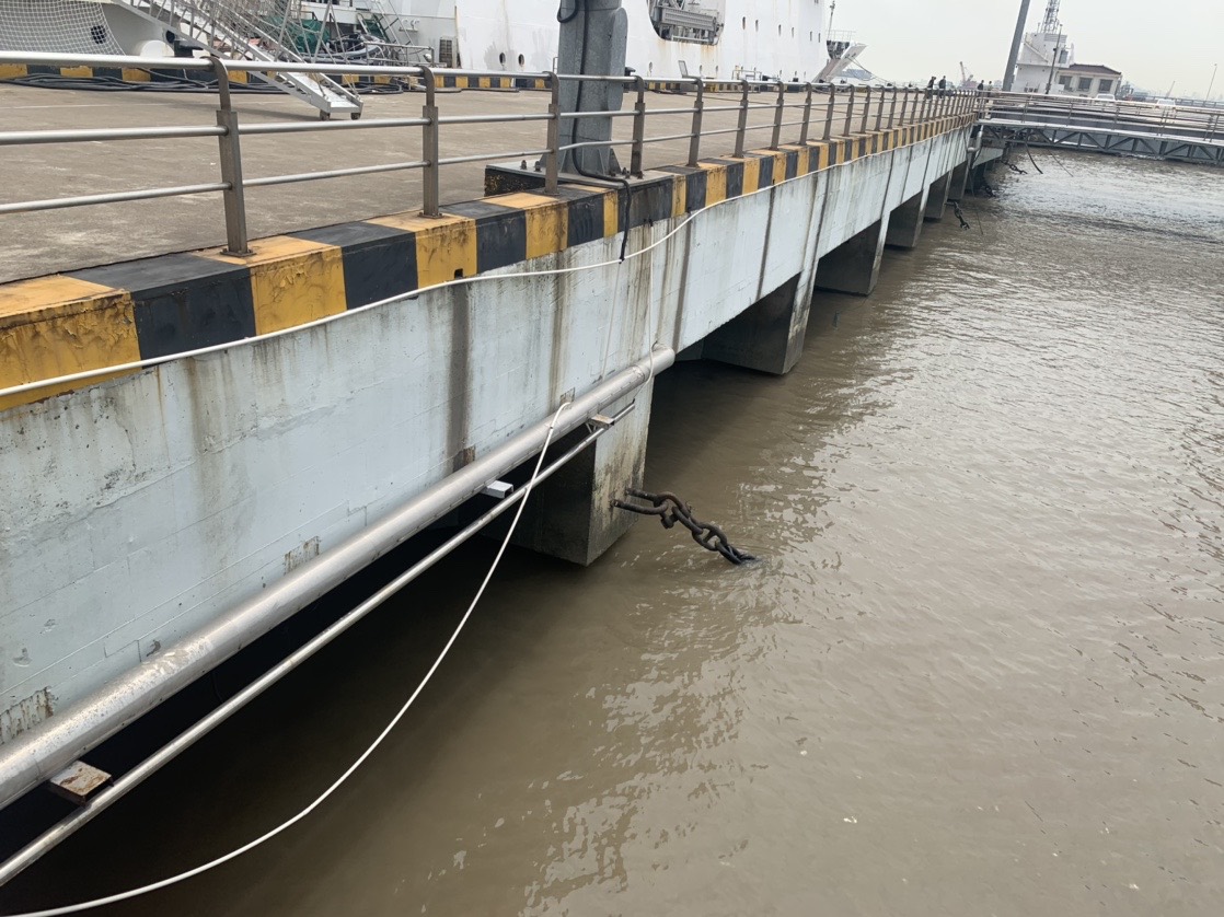 (2)輪胎護舷整體情況完好,未發現破損情況,系船柱基本完好、無缺失、無嚴重缺陷,但系船柱原有防腐涂層存在起皮、銹蝕的現象。