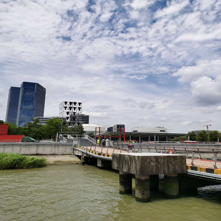 具有相同電源的設(shè)備應(yīng)同時進(jìn)行測試;在整個測試中,應(yīng)將測試時間較長的設(shè)備作為主體,而其他設(shè)備應(yīng)進(jìn)行交替測試。還需要進(jìn)行傾斜測試以確定船舶的實際重心。試驗過程中,回彈錘垂直于試驗面,地基樁與梁的連接節(jié)點完好無損,無明顯的松動或開裂現(xiàn)象。走廊管道和管架結(jié)構(gòu)基本上完好無損。根據(jù)渦流和脈沖原理測試了鋼保護(hù)層的厚度,并使用鋼筋測試儀在組件上移動以直接測量保護(hù)層的厚度。在超過設(shè)計載荷的負(fù)載突然損壞人造碼頭后,將測試和評估組件的剩余承載能力和使用壽命。